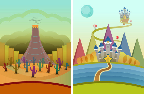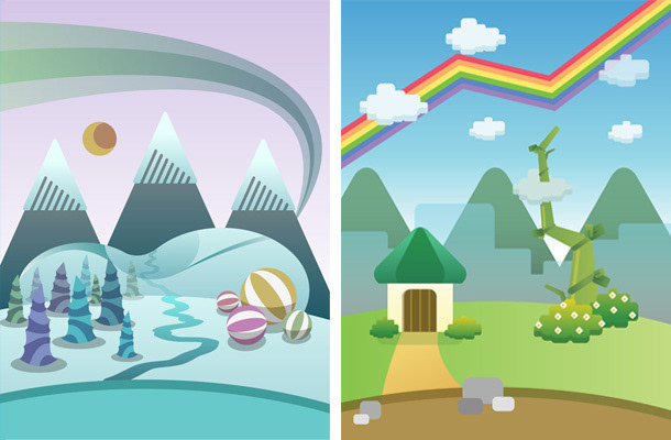 A series of in-game backgrounds and artwork for a galaxy theme mobile game.